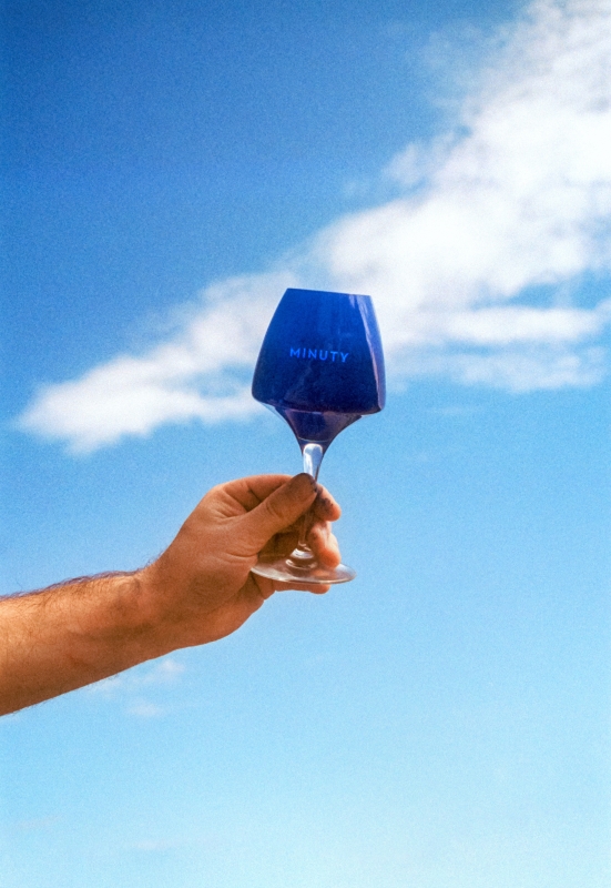 Routledge 以其极具辨识度的蓝色调与自由笔触,将法国里维埃拉的海风、日落与葡萄园的地貌融为一体。瓶身从粉色渐变至蓝色,宛若圣特罗佩黄昏的天空,层次丰富的线条象征着阳光、海浪、雨露与土地——那些孕育出 Minuty 葡萄酒灵魂的自然元素。