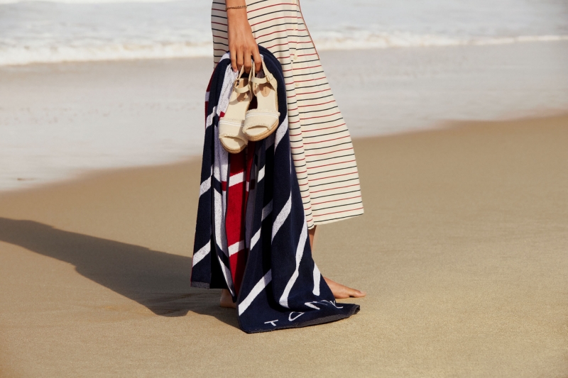 整个系列延续了 “Prep made Modern” 的风格,但换上更为夏日的质地与配色。轻薄 linen 的 signature shirting 更加 airy,配合海风时呈现自然的褶动;breezy dresses 与 coordinating sets 则以 fuss-free 的方式出现,既适合海滩,也能顺滑切换至晚间聚会。sunshine-ready polos 以新季颜色与 stripes 提亮造型,而 chino shorts、textured sandals 与 roomy beach bags 则构成夏季生活中最实穿的组合。
