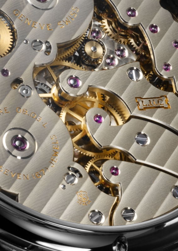 机芯内部共有686枚组件,以双发条盒分别为Timekeeping与Sonnerie提供动力。Sonnerie Barrel在Grande Sonnerie模式下可连续运作12小时,而主发条则提供70小时动力储备。机芯同时获得Poinçon de Genève与COSC双重认证,使L.U.C Grand Strike成为当代最具权威认证的Grande Sonnerie作品之一。