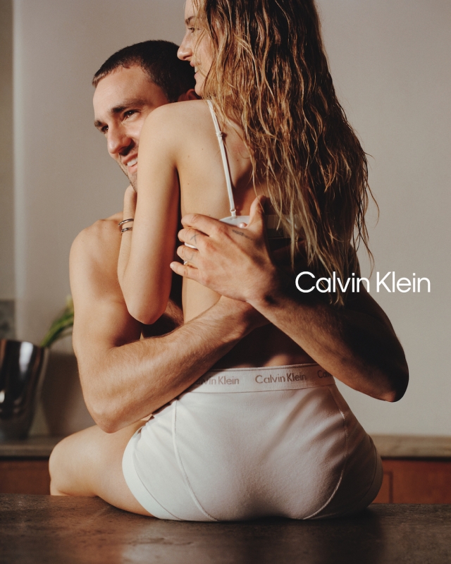 此次企划由Grace Van Patten与Jackson White出演,两人不仅是荧幕搭档,也是现实中的伴侣。镜头记录他们身着Calvin Klein限量Valentine’s Day内衣与居家服的居家状态,没有刻意表演,更多是关于放松、陪伴与自然相处的瞬间。在摄影师Zora Sicher的镜头下,这些画面显得格外真实,也再次强调了Calvin Klein一贯强调的“舒适即自信”。