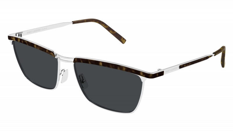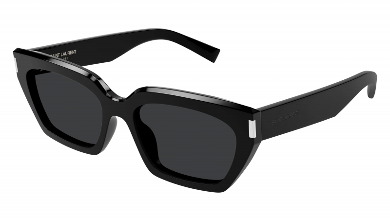 Central to the collection is the interplay of glossy black acetates, metal accents and sculptural geometry. Many designs feature a refined sharpness that references classic Saint Laurent codes, while presenting a distinctly modern profile. Slim temples elongate the frame’s silhouette, adding a sense of tension and poise. Oversized lenses, meanwhile, bring boldness without excess, allowing the eyewear to enhance expression rather than overpower it.