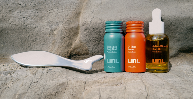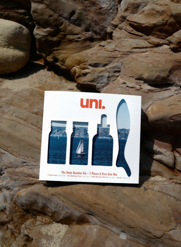 Uni Body Routine Kit 犹如一场私人 Spa 之旅,包含 Body Wash、24-Hour Body Serum、Golden Microalgae Body Oil 以及随行版身体刮痧板。配方蕴含 Australian Caviar Lime、Kakadu Plum 与 Uni 标志性 Marine Complex,从清洁到滋养,每一步都在修护与紧致间找到理想平衡。包装采用可持续材质,低调却不失格调。