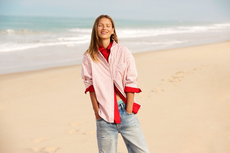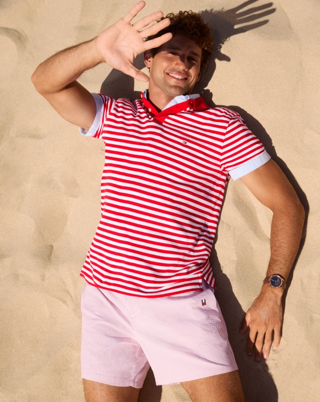 整个系列延续了 “Prep made Modern” 的风格,但换上更为夏日的质地与配色。轻薄 linen 的 signature shirting 更加 airy,配合海风时呈现自然的褶动;breezy dresses 与 coordinating sets 则以 fuss-free 的方式出现,既适合海滩,也能顺滑切换至晚间聚会。sunshine-ready polos 以新季颜色与 stripes 提亮造型,而 chino shorts、textured sandals 与 roomy beach bags 则构成夏季生活中最实穿的组合。