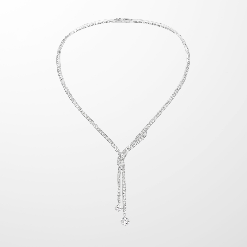 Liens Inséparables为女性的优雅气质提供两款高级珠宝:第一款由钻石和白金制成,由两条项链组成,一条短,另一条采用经典垂坠式——灵感来自1911年至1913年为印多尔大君设计的双钻珍珠项链以来品牌作品的标志性图案。