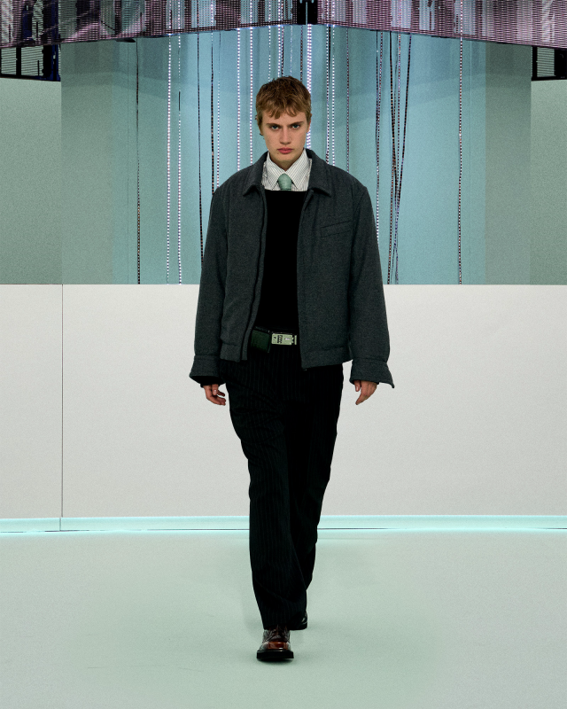 这次时装秀的主题“CorpCore”将展示场地变身成BOSS Techtopia:一个瞬间工作场所,一个融合了身心需求的绿洲,极致的人体工程设计也凸显其中。通过引领科技变革的奇迹,与郁郁葱葱的绿色空间相结合,BOSS Techtopia呈现出一种宁静的氛围,以及对未来的展望。