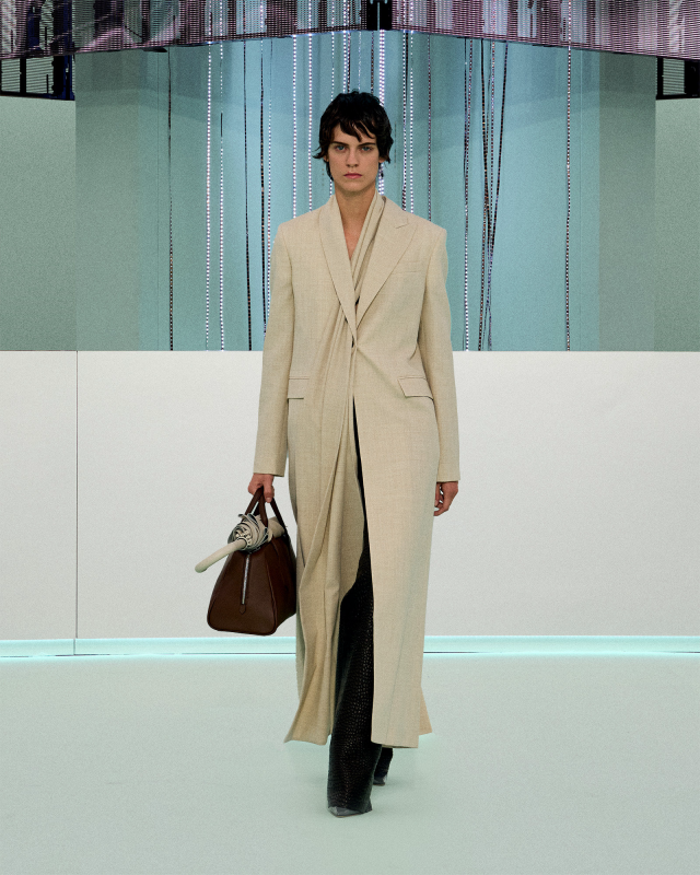 T台周围设有六个主题房间,由BOSS Techtopia控制室监督。在HarmoniTech空间中,瑜伽爱好者可以在快节奏的公司世界中找到宁静的庇护所。Brainstorm房间里,“员工们”戴着光疗耳机召唤集体的创造力。另外两个房间则作为和谐的、充满植物的会议空间。AromaSynth实验室是一个专门用于嗅觉探索的空间,庆祝经典的BOSS香水BOSS Bottled Eau de Toilette,同时还展示了BOSS香水最新作品BOSS Bottled Elixir供品鉴。