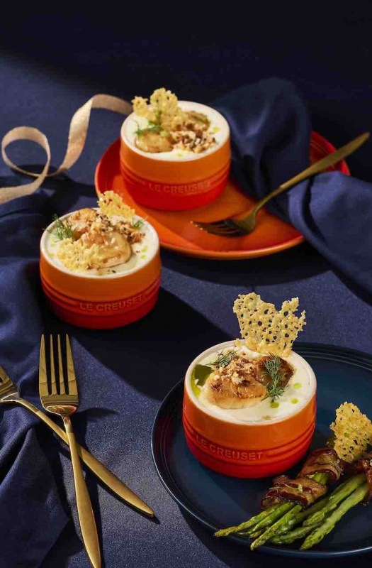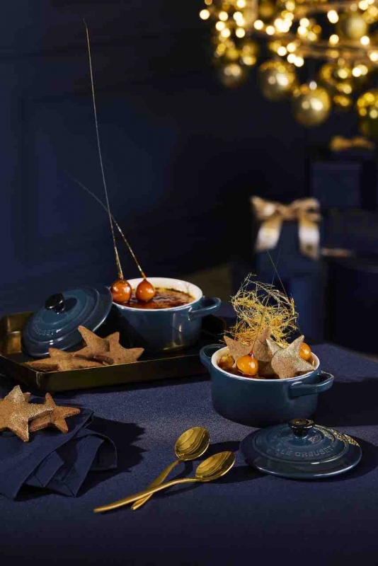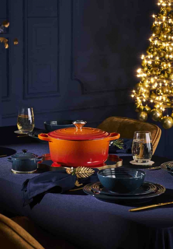 What stands out this season is not novelty but connection. Colour becomes a form of storytelling, and familiar Le Creuset silhouettes take on new meaning depending on how they’re styled. A deep Nuit table setting under golden decorations feels almost cinematic. A Volcanic casserole sitting among summer fruits or fresh herbs becomes a warm invitation to slow down and taste the moment. Together, they form a palette that suits both the nostalgia of the holidays and the freshness of a new year approaching.