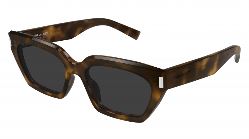 Central to the collection is the interplay of glossy black acetates, metal accents and sculptural geometry. Many designs feature a refined sharpness that references classic Saint Laurent codes, while presenting a distinctly modern profile. Slim temples elongate the frame’s silhouette, adding a sense of tension and poise. Oversized lenses, meanwhile, bring boldness without excess, allowing the eyewear to enhance expression rather than overpower it.