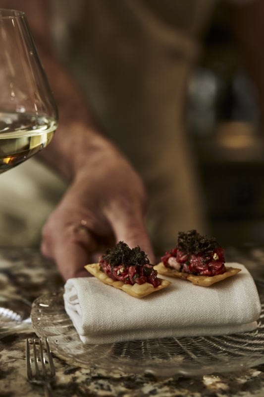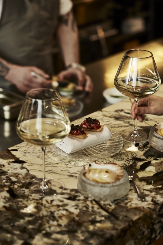 Hosted at the kitchen pass in the heart of the Dining Room, the Chef’s Table welcomes just two guests each evening. The setting places diners directly within the rhythm of the kitchen, offering a front-row view of technique, timing and creative exchange as each course comes together. It is a perspective rarely offered, where the boundary between guest and creator feels intentionally softened.